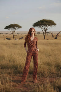 Jumpsuit, sophisticated '70s, fake wrap top, waist yoke, slash pockets, back strap fastening, Marlenepants.