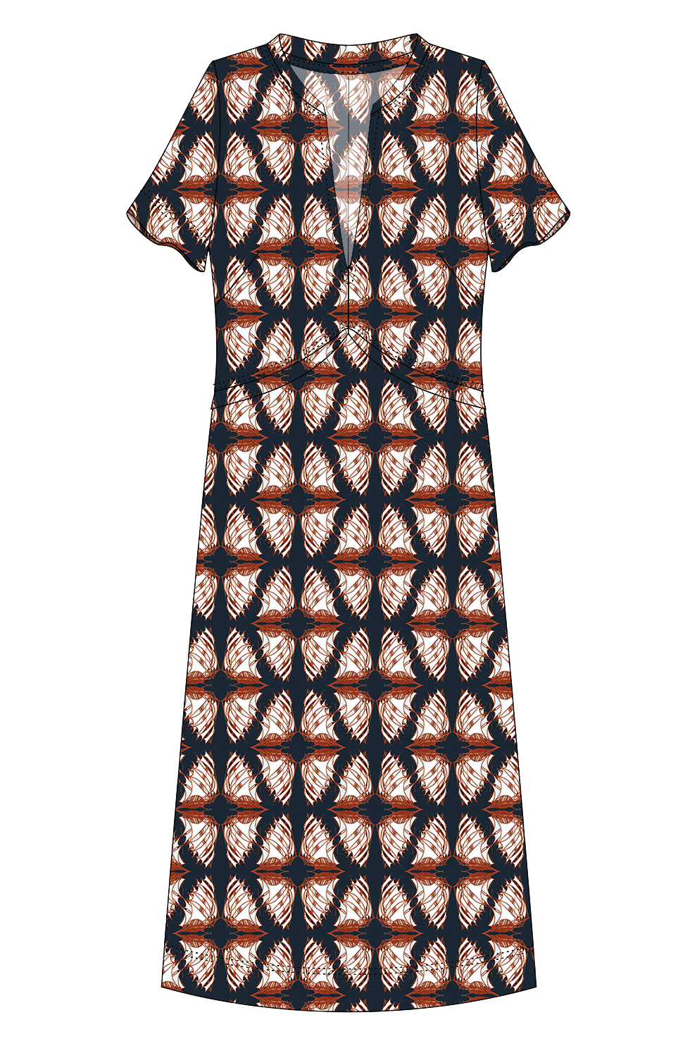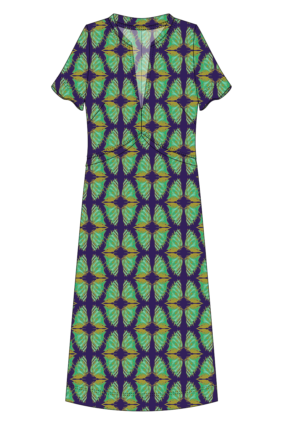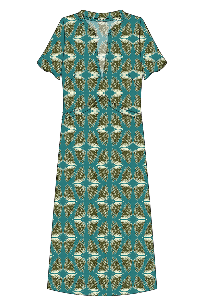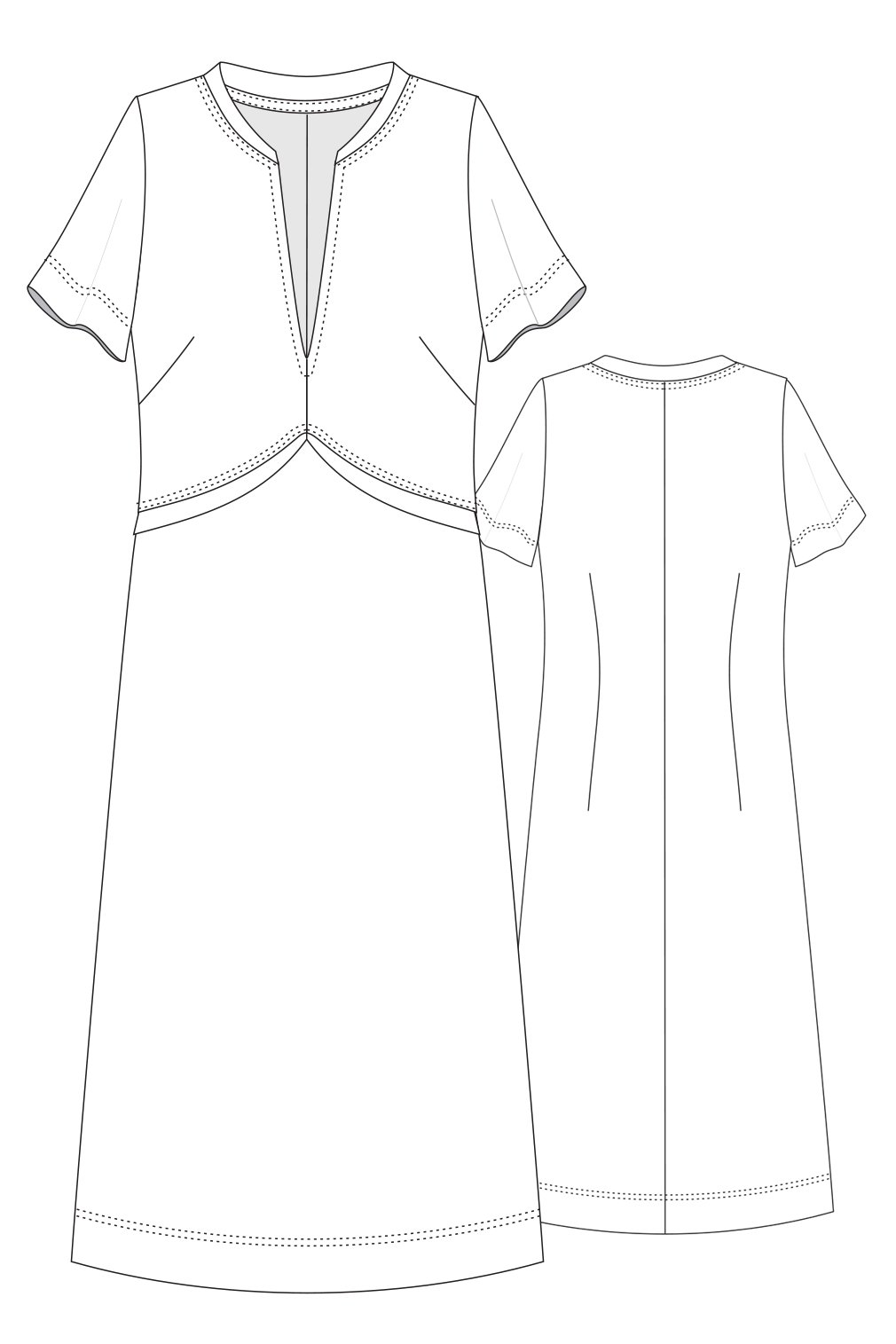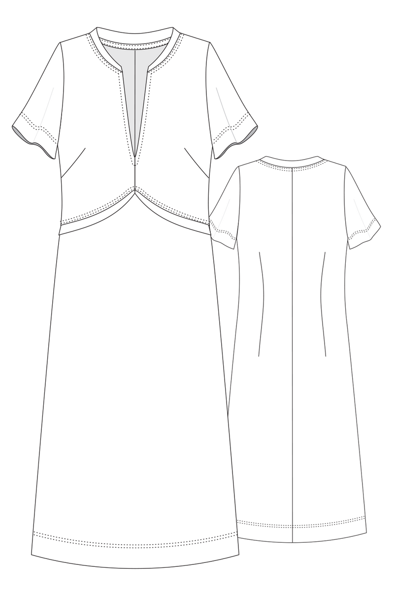 Francesca ist ein weiteres neues charmantes Sommerkleid aus *Superbiflex und eine Weiterentwicklung aus Franca. Auch hier testen wir jetzt schon mal einen Schnitt, der eigentlich schon für den Sommer 2026 gedacht ist. Der besonders vorteilhafte Schnitt entsteht durch den geschlitztem Rundhals und die untergesetzten schmalen Blenden am Halsloch und der horizontal verlaufenden Pagoden-Naht. Die neuen, leicht ausgestellten kurzen Ärmel unterstreichen den cool-femininen Look.