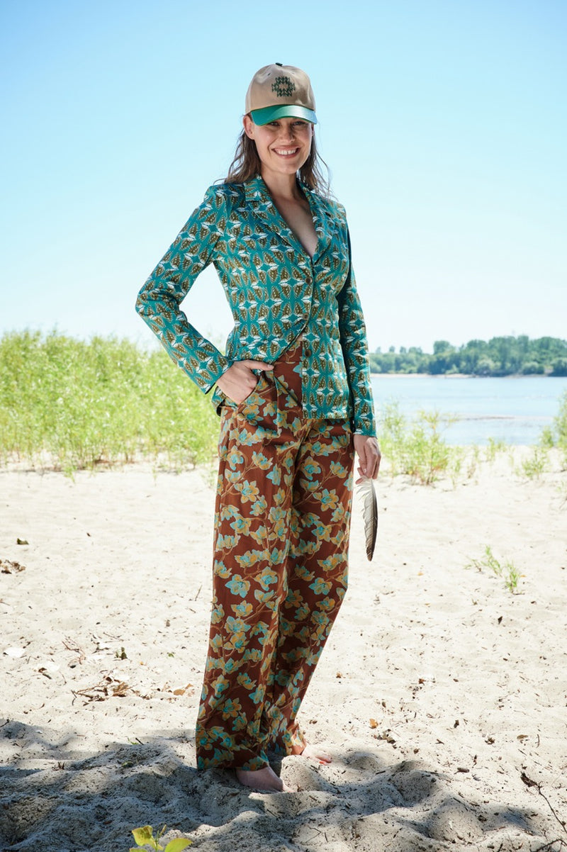 Perfekt zu kombinieren ist Palomina im Suit-Look bei heissen Temperaturen mit dem Top Lucy 25, der Sommer-Reverbluse-Krempelbluse Delilah 25 oder cool zur neuen BoHo Bluse Rossi (Bluse bitte in den Bund stecken, sonst wirkt es zu massiv) ebenfalls aus Popelinstretch. Perfekt dazu auch der Blazer Como aus Cottonstretch, sowie kombinierbar zu einfarbigen Lieblings-T-Shirts, Tops und Blusen.